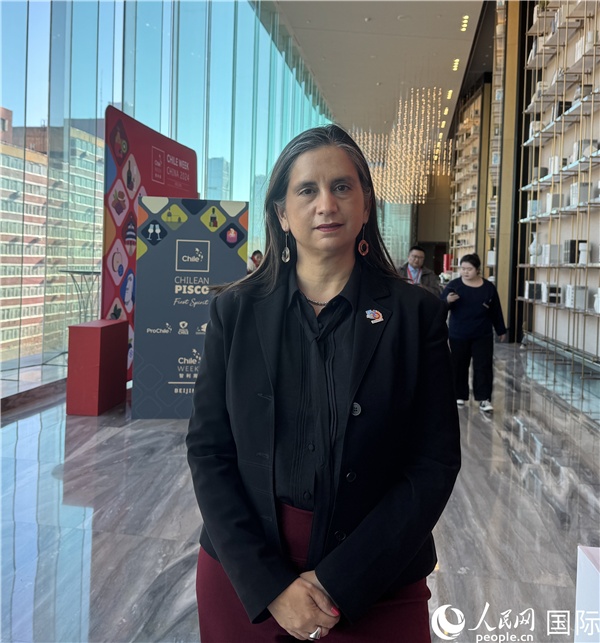 智利農(nóng)業(yè)部副部長(zhǎng)伊格納西亞·費(fèi)爾南德斯·格迪卡(Ignacia Fernández Gatica)接受人民網(wǎng)記者專訪。人民網(wǎng)記者 吳思萱攝