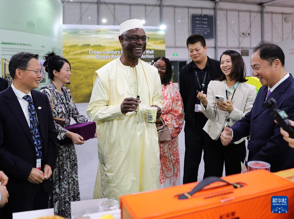 COP16期間蒂奧行程繁忙,但他依然仔細(xì)觀展,從“刷狀網(wǎng)繩式草方格沙障”技術(shù)、高效光伏設(shè)備,到植樹機(jī)器人、衛(wèi)星遙感監(jiān)測系統(tǒng),再到智慧沙產(chǎn)業(yè)的可持續(xù)發(fā)展故事,深入了解荒漠化治理中國方案的細(xì)節(jié)。