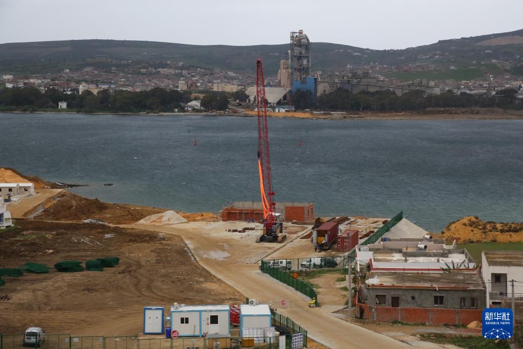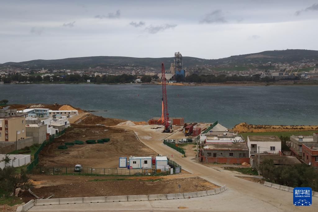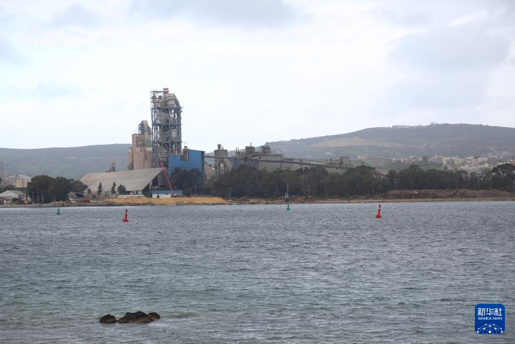 這是12月20日在突尼斯北部城市比塞大拍攝的比塞大大橋項目橋墩設置點位。新華社記者 黃靈 攝