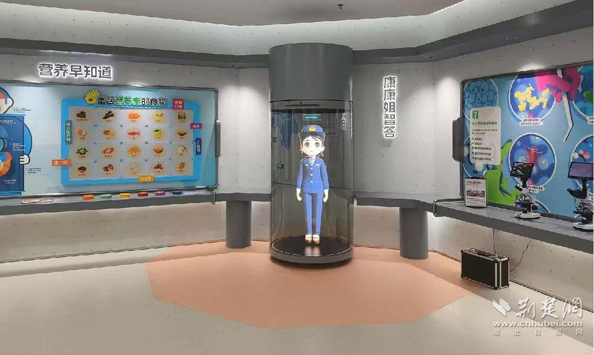 “康康姐”AI數(shù)字人是以武漢市市場(chǎng)監(jiān)管局的卡通代言人“康康姐”為原型設(shè)計(jì),參觀者不但可以向她提出有關(guān)食品生產(chǎn)、經(jīng)營(yíng)方面的問(wèn)題,也可以探索食品世界的知識(shí)、破解食品安全謠言。