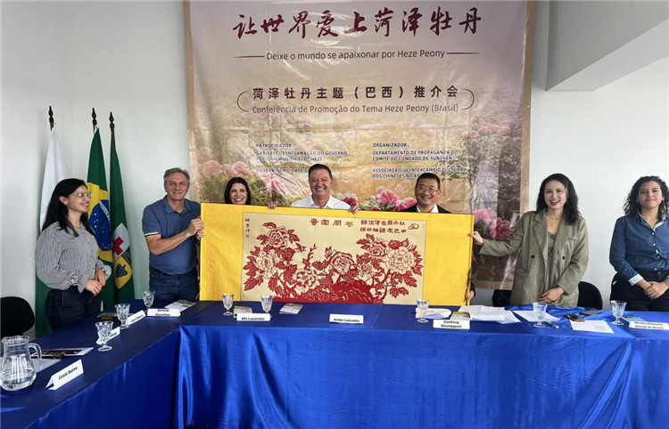 當?shù)貢r間12月17日,以“讓世界愛上菏澤牡丹”為主題的文化推介會在巴西巴拉那州哥倫布市舉行。主辦方供圖