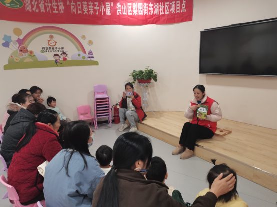 12月26日上午9點,湖北省計劃生育協(xié)會洪山區(qū)梨園街東湖社區(qū)向日葵親子小屋項目點的親子早教課程如期開展。