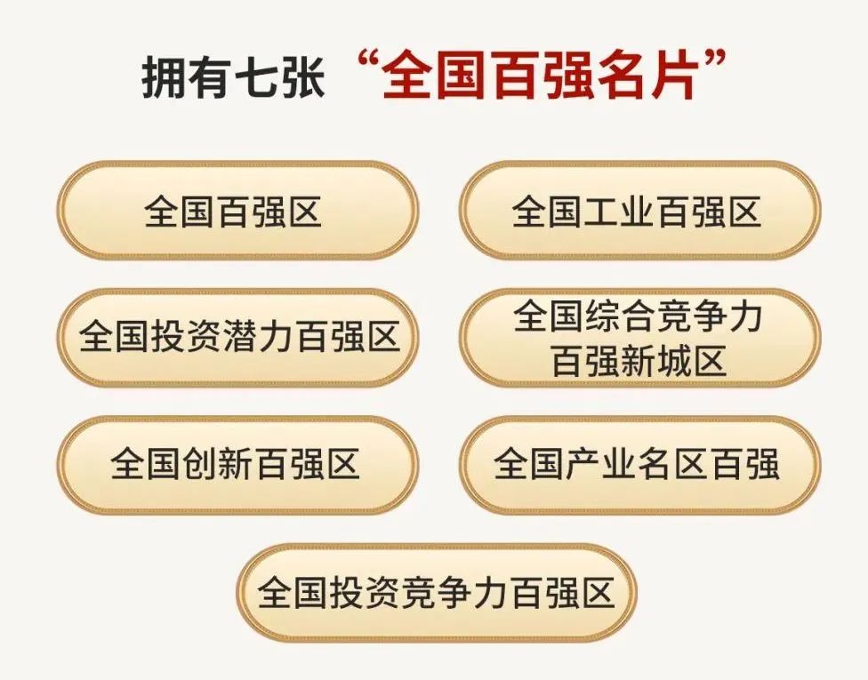 首次入選全國創(chuàng)新百強(qiáng)區(qū)、全國產(chǎn)業(yè)名區(qū)百強(qiáng)、全國投資競(jìng)爭(zhēng)力百強(qiáng)區(qū),已擁有七張全國“百強(qiáng)名片”。