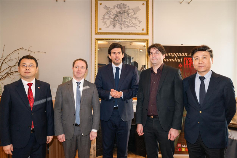 劉紅革在致辭中表示,在中法建交紀(jì)念日、農(nóng)歷蛇年春節(jié)前夕,與勒米爾蒙市合作舉辦此次展覽具有重要意義。“天下龍泉—宋韻青瓷作品展”是在法國的首次展出,本次展覽精選45件龍泉青瓷精品,涵蓋摹古經(jīng)典器物、藝術(shù)青瓷和現(xiàn)代日用青瓷。這些作品不僅傳承了千年的制瓷技藝,還凝聚了當(dāng)代手工藝人的思考與創(chuàng)新成果,龍泉青瓷以含蓄內(nèi)斂的姿態(tài),展示了中國文化“和而不同”的智慧與審美理念。希望通過本次展覽,讓更多的法國朋友感受到青瓷作品的藝術(shù)價值和中華優(yōu)秀傳統(tǒng)文化的獨(dú)特魅力,架起中法民眾心靈相通的橋梁。