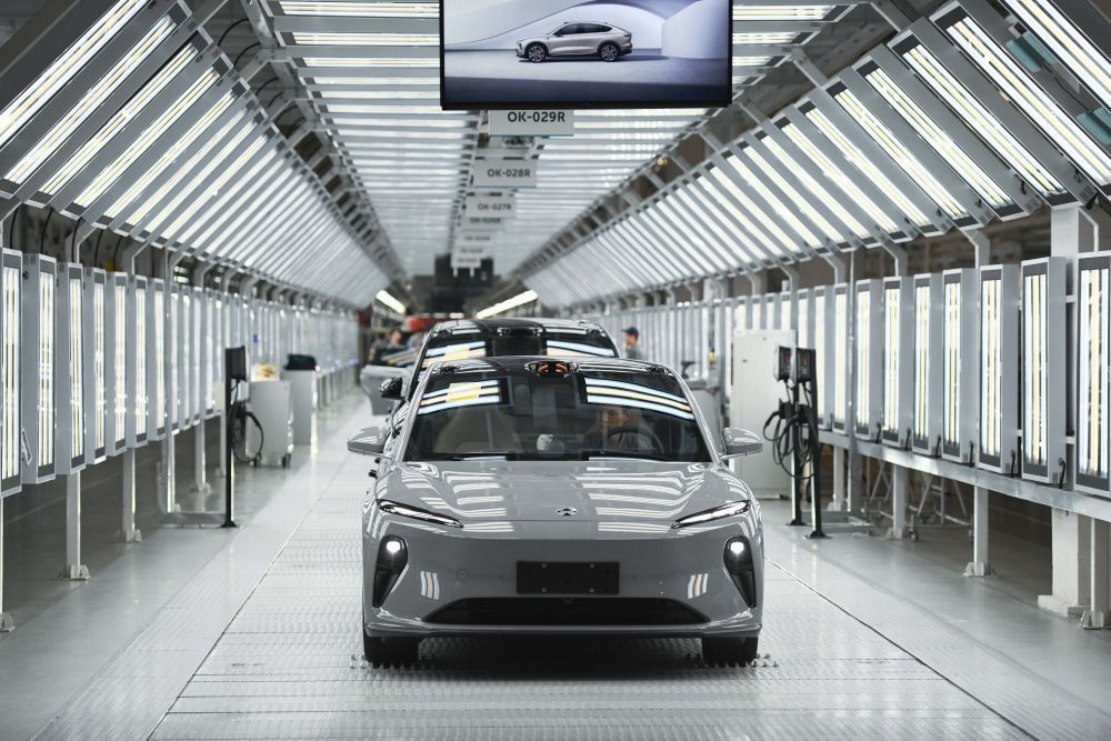 這是安徽省合肥市新橋智能電動汽車產(chǎn)業(yè)園蔚來第二工廠內(nèi)的新能源汽車生產(chǎn)線(2024年5月9日攝)。新華社記者張端攝