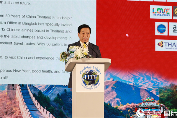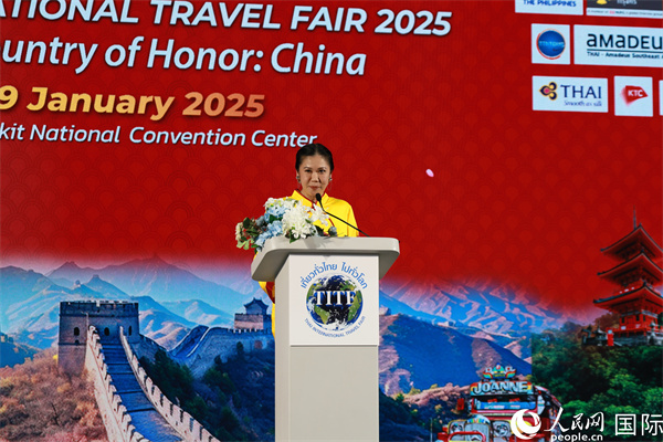 韓志強表示,過去一年,中國過境免簽政策全面放寬優(yōu)化,為外國游客赴華持續(xù)推出各項便利措施,“你好!中國”國家旅游形象更加深入人心,“China Travel”入境游持續(xù)火熱。中泰邁入“免簽時代”以來,兩國雙向旅游加快回暖。2024年,中國游客數量位列赴泰外國游客榜首,達673.3萬人次,為泰國創(chuàng)造了3780億泰銖收入。去年前三個季度,泰國赴華游客同比增長近3倍,中國成為泰國游客出國游最受歡迎目的地之一。2025年是中泰建交50周年“中泰友誼金色50年”,中方很榮幸擔任本屆旅游展主賓國,希望中泰兩國人民的雙向奔赴,相知相親,為中泰命運共同體建設注入強大動力。
