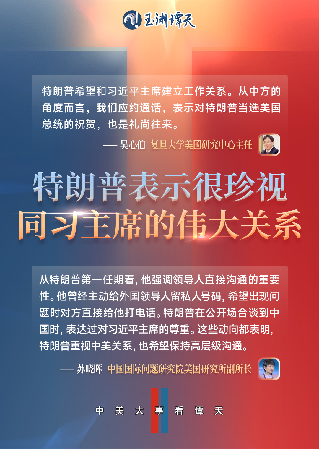 1月17日晚,國(guó)家主席習(xí)近平同美國(guó)當(dāng)選總統(tǒng)特朗普通電話(huà)。一個(gè)值得注意的細(xì)節(jié)是,此次通話(huà),距離特朗普正式就職還有3天。這通電話(huà),意味著什么?來(lái)看譚主的獨(dú)家解讀。