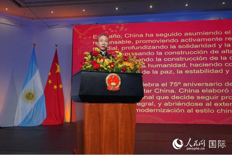 圖為中國駐阿根廷大使王衛(wèi)在招待會上致辭。人民網(wǎng)記者 許放攝