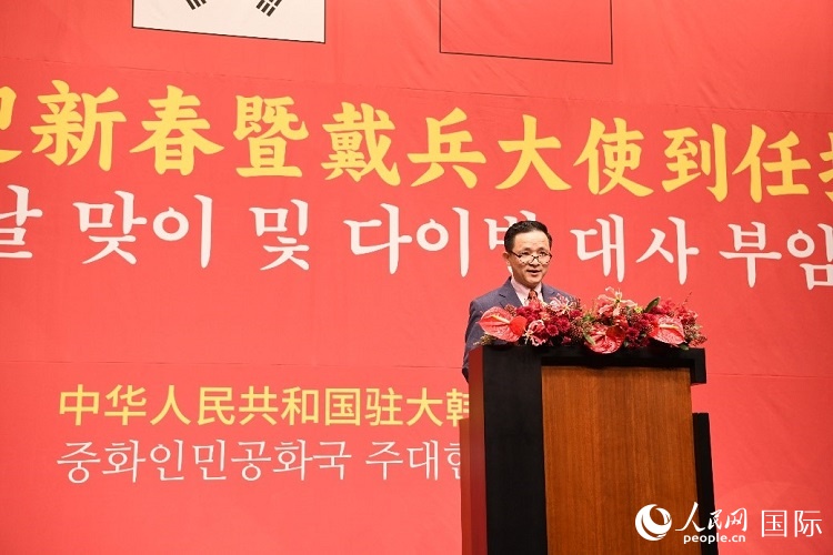 戴兵發(fā)表致辭,向來賓致以新春祝福,表示中韓關(guān)系正處于承前啟后的關(guān)鍵階段,此時(shí)出任中國駐韓國大使,深感使命光榮,更清楚責(zé)任重大。中國領(lǐng)導(dǎo)人就發(fā)展中韓關(guān)系提出堅(jiān)守建交初心、堅(jiān)定睦鄰友好、堅(jiān)持互利共贏的重要原則。雙方要堅(jiān)持做互尊互信的近鄰、互利共贏的伙伴、相知相親的朋友,共同推動(dòng)中韓戰(zhàn)略合作伙伴關(guān)系健康穩(wěn)定、積極向上發(fā)展。
