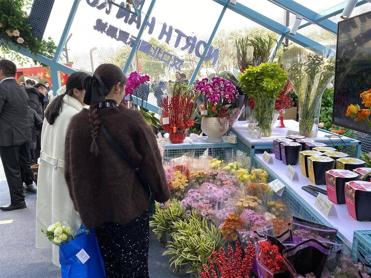 在鮮花展區(qū),厄瓜多爾玫瑰、坦桑尼亞鐵線蓮、南非紅帝王花、荷蘭丁香花和彼岸花、墨西哥跳舞蘭等花卉漂洋過(guò)海而來(lái),與來(lái)自中國(guó)云南、海南等地的香水百合、雛菊、轉(zhuǎn)運(yùn)竹等各色花卉植物爭(zhēng)奇斗艷。