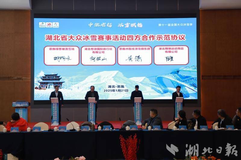 會上,中國冰雪產(chǎn)業(yè)研究中心主任、中國科學(xué)院大學(xué)教授李宇就“大眾冰雪賽事活動發(fā)展現(xiàn)狀與趨勢”做專題輔導(dǎo);宜昌體育局、神農(nóng)架林區(qū)體育局、武漢市冰雪運動協(xié)會、襄陽市楚星青少年體育俱樂部、武漢體育中心發(fā)展有限公司等8家單位作交流發(fā)言。恩施綠蔥坡滑雪場、湖北想游國際旅行社有限公司、恩施州酷炫滑雪俱樂部、湖北翔馳運動用品有限公司簽訂湖北省大眾冰雪賽事活動四方合作示范協(xié)議,通過整合四方資源,發(fā)揮各自領(lǐng)域的優(yōu)勢和特點,實現(xiàn)資源共享、優(yōu)勢互補,共同推進湖北冰雪產(chǎn)業(yè)高質(zhì)量發(fā)展。