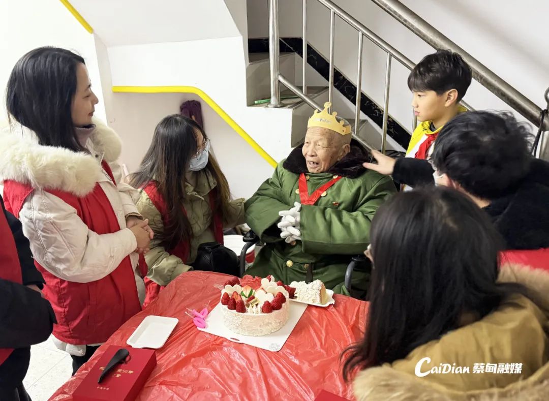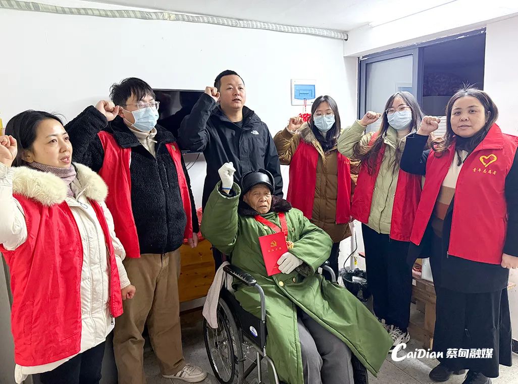 1月17日上午,龔家?guī)X社區(qū)黨員滿懷敬意,帶著精心準(zhǔn)備的生日蛋糕和米油等生活物資,來到張業(yè)榮老人家中,為他補辦100歲生日。張業(yè)榮佩戴著“光榮在黨50年”紀(jì)念章,深情高唱《沒有共產(chǎn)黨就沒有新中國》,與大家一起重溫入黨誓詞,講述往昔革命故事。