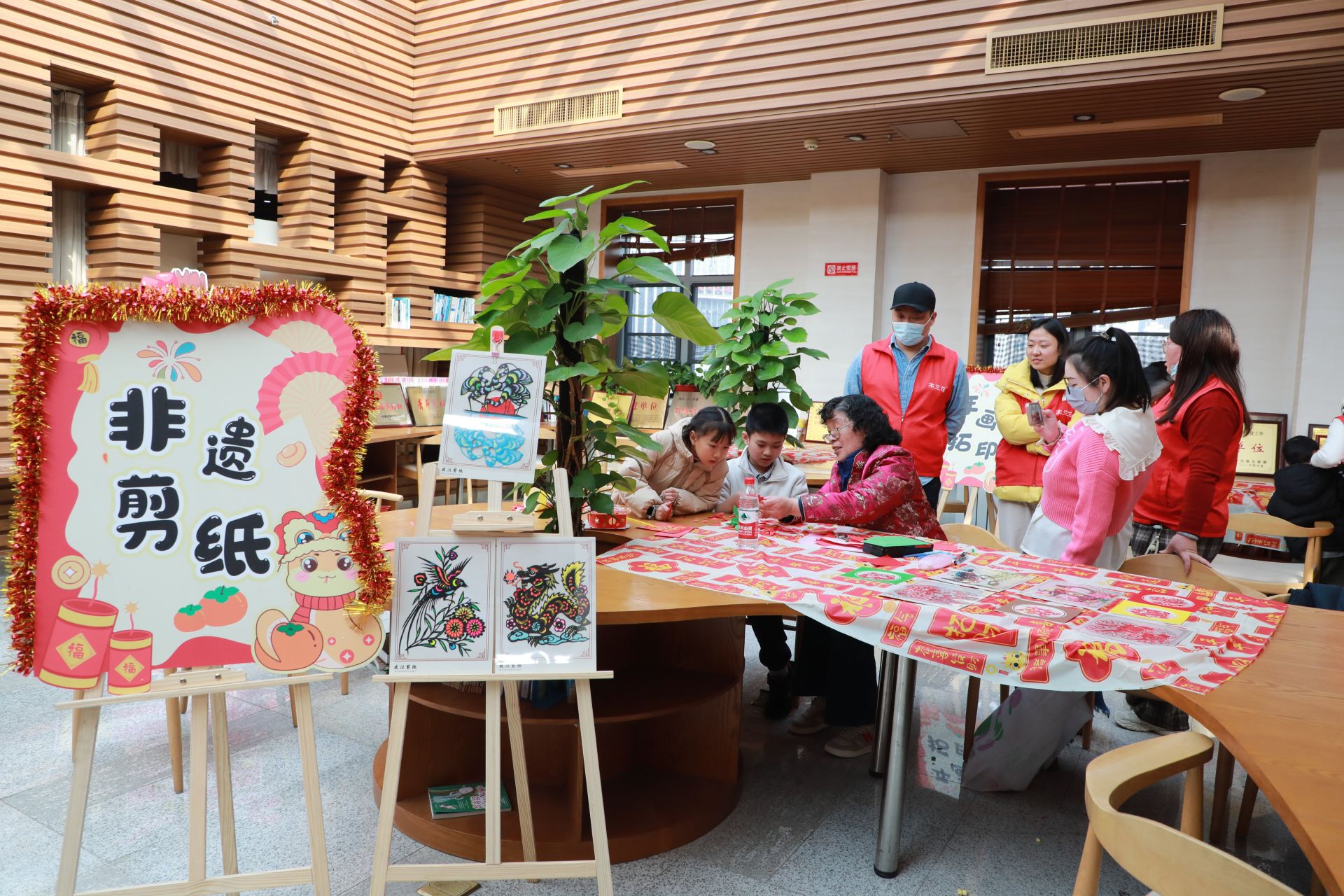 此次活動(dòng)專門邀請(qǐng)到湖北省書法家協(xié)會(huì)原駐會(huì)副主席葛昌永和知名剪紙非遺傳承人尹東梅等大咖出席,除寫春聯(lián)、送福字外,還安排了非遺剪紙、手工DIY花燈、年畫拓印、猜謎語(yǔ)、游戲互動(dòng)等內(nèi)容,共吸引近百名職工及其子女參與。