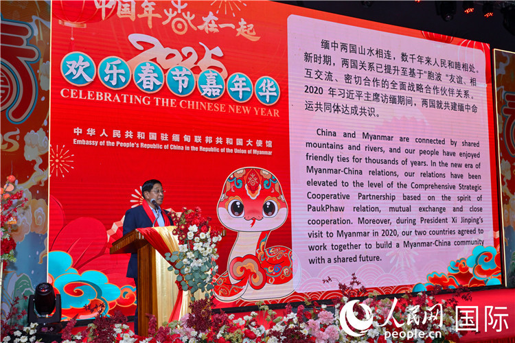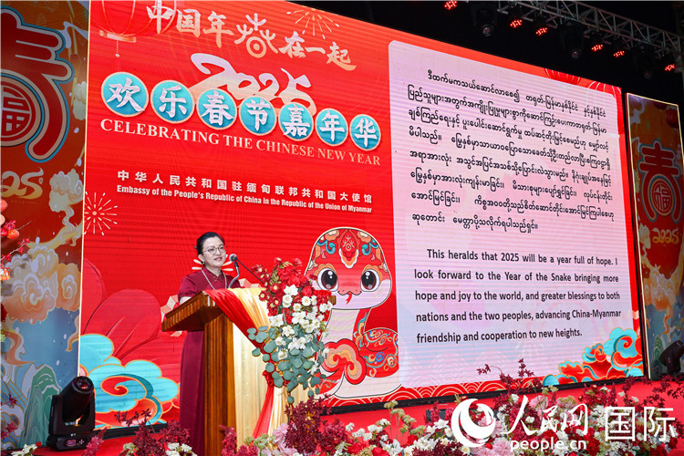 人民網(wǎng)仰光1月24日電 (記者謝佳君)1月23日,中國駐緬甸大使館在仰光舉辦2025年“歡樂春節(jié)嘉年華”活動,中國駐緬甸大使馬珈、緬甸副總理兼政府總理辦公室部長丁昂山等多位緬政府高層、多國駐緬使節(jié)、在緬華僑華人、中資機(jī)構(gòu)、留學(xué)生、緬各界友人等1000余人歡聚一堂,共慶新春。