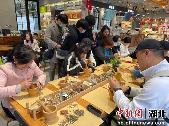 體驗(yàn)完炸圓子,臺(tái)胞們來到曇華林,在葉開泰草本茶咖·文創(chuàng)手作店動(dòng)手自制香囊,并參觀武昌城史館,深入了解武昌古城的文化源流及發(fā)展變遷。