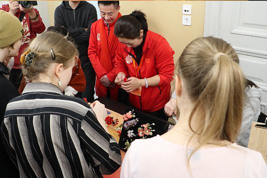 在羅素中學(xué),展現(xiàn)中國春節(jié)元素的“快閃”和臉譜、木工、絨花等非遺制作展示以及琵琶、笛子獨(dú)奏和武術(shù)表演等精彩節(jié)目引得學(xué)生們陣陣叫好,驚嘆于中國藝術(shù)的精美和深厚,久久不愿離去。