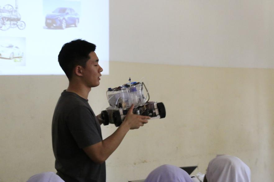 支教課堂上的Chem-E-Car小車(chē)展示。圖片由清華大學(xué)探微書(shū)院“桑華筑夢(mèng)”支隊(duì)提供