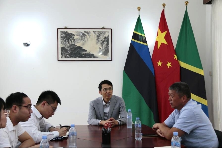 支隊(duì)在中國(guó)駐桑給巴爾總領(lǐng)事館進(jìn)行交流。圖片由清華大學(xué)探微書(shū)院“桑華筑夢(mèng)”支隊(duì)提供