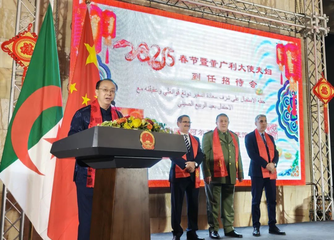 人民網(wǎng)阿爾及爾1月24日電 (記者郝瑞敏)1月23日,中國駐阿爾及利亞大使館舉辦2025年春節(jié)暨董廣利大使夫婦到任招待會(huì)。阿民族院議長代表、外委會(huì)主席,人民軍總參謀長代表、國防部對(duì)外關(guān)系與合作局局長,海關(guān)總局局長,以及政府、議會(huì)、政黨、媒體、智庫等各界人士,各國使節(jié),中資機(jī)構(gòu)和華僑華人代表等約650人出席。