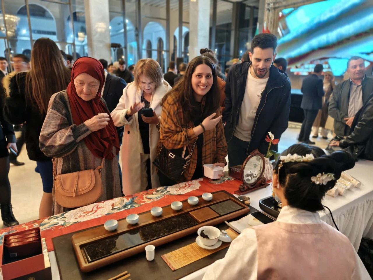 嘉賓們品嘗中國茶。中國駐阿爾及利亞大使館供圖