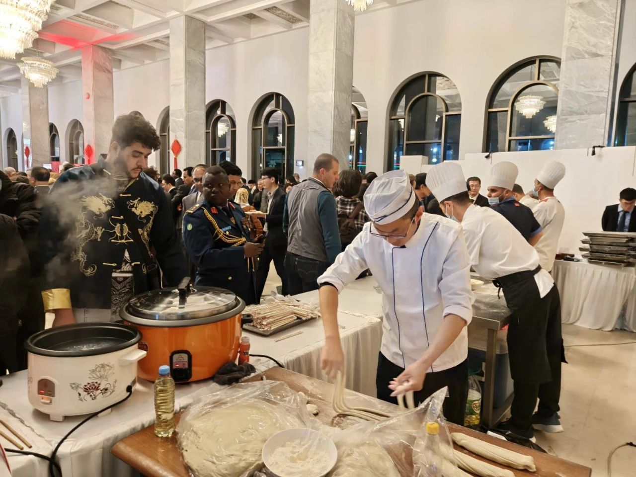 嘉賓們品嘗中國美食拉面。中國駐阿爾及利亞大使館供圖