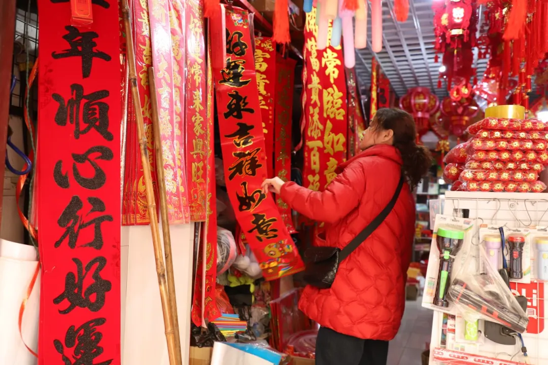“今天我主要來買對聯(lián)和紅燈籠。”市民胡女士說,過年,就是要把家里裝飾得喜慶一些,才有年味。