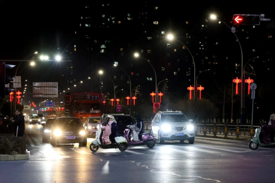 夜幕降臨,華燈初上,孝感的夜晚也別有一番韻味,一盞盞紅彤彤的中國結高高掛起,宛如一串串紅寶石點亮了整個夜空,照亮了遠方游子春節(jié)返鄉(xiāng)的路。