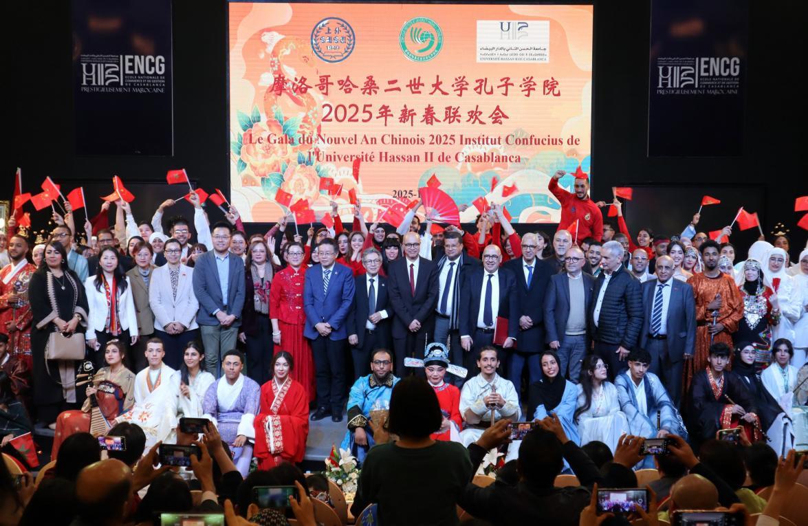 人民網(wǎng)迪拜1月27日電 (記者管克江)1月25日,摩洛哥哈桑二世大學(xué)孔子學(xué)院成功舉辦以“蛇迎春至,龍騰萬象”為主題的春節(jié)聯(lián)歡晚會,為現(xiàn)場近500名中摩觀眾獻上了一場精彩紛呈的文化盛宴。