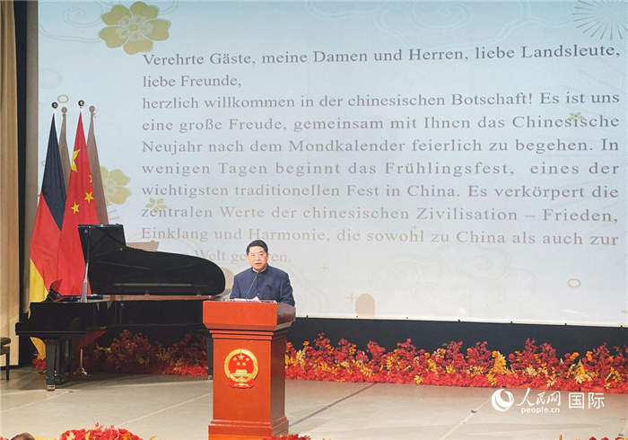 人民網(wǎng)柏林1月26日電 (記者郭梓云、劉赫)1月24日,中國(guó)駐德國(guó)大使館舉辦“溫暖迎春·共慶中國(guó)年”春節(jié)招待會(huì),中國(guó)駐德國(guó)大使鄧洪波夫婦同各界嘉賓歡聚一堂,共慶佳節(jié)。在德華僑華人、中資機(jī)構(gòu)、留學(xué)生代表,德各界友好人士,多國(guó)駐德使節(jié)等近500人出席。