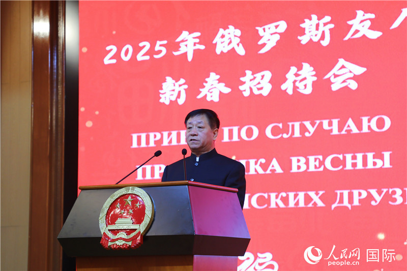 張漢暉大使向來(lái)賓致以新春?jiǎn)柡虿⒅赋觯?024年,在以習(xí)近平同志為核心的黨中央領(lǐng)導(dǎo)下,中國(guó)式現(xiàn)代化邁出新的堅(jiān)定步伐,全年GDP近135萬(wàn)億元,比上年增長(zhǎng)5%。前幾天,習(xí)近平主席和普京總統(tǒng)舉行視頻會(huì)晤,繼續(xù)引領(lǐng)中俄關(guān)系登高望遠(yuǎn)。今年是世界反法西斯戰(zhàn)爭(zhēng)勝利和聯(lián)合國(guó)成立80周年。雙方將以中俄關(guān)系的穩(wěn)定性和堅(jiān)韌性應(yīng)對(duì)外部環(huán)境的不確定性,共同促進(jìn)兩國(guó)發(fā)展振興,維護(hù)國(guó)際公平正義。