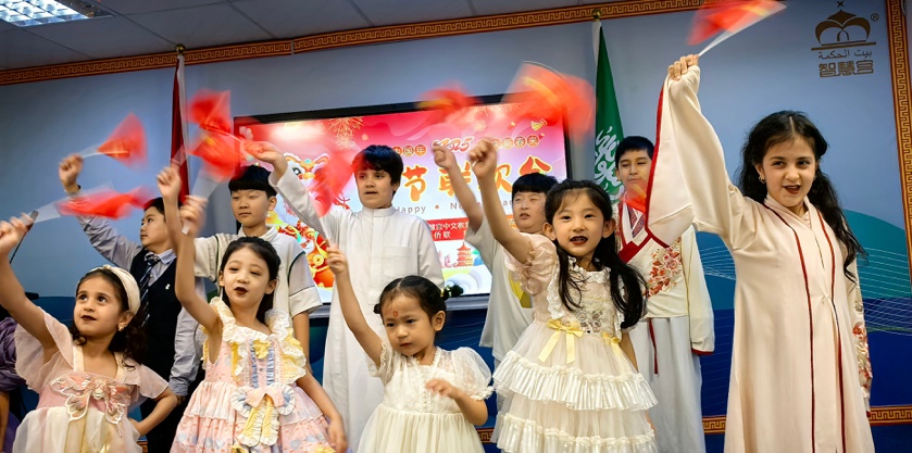 小朋友在表演節(jié)目。沙特智慧宮中文教育學(xué)院供圖