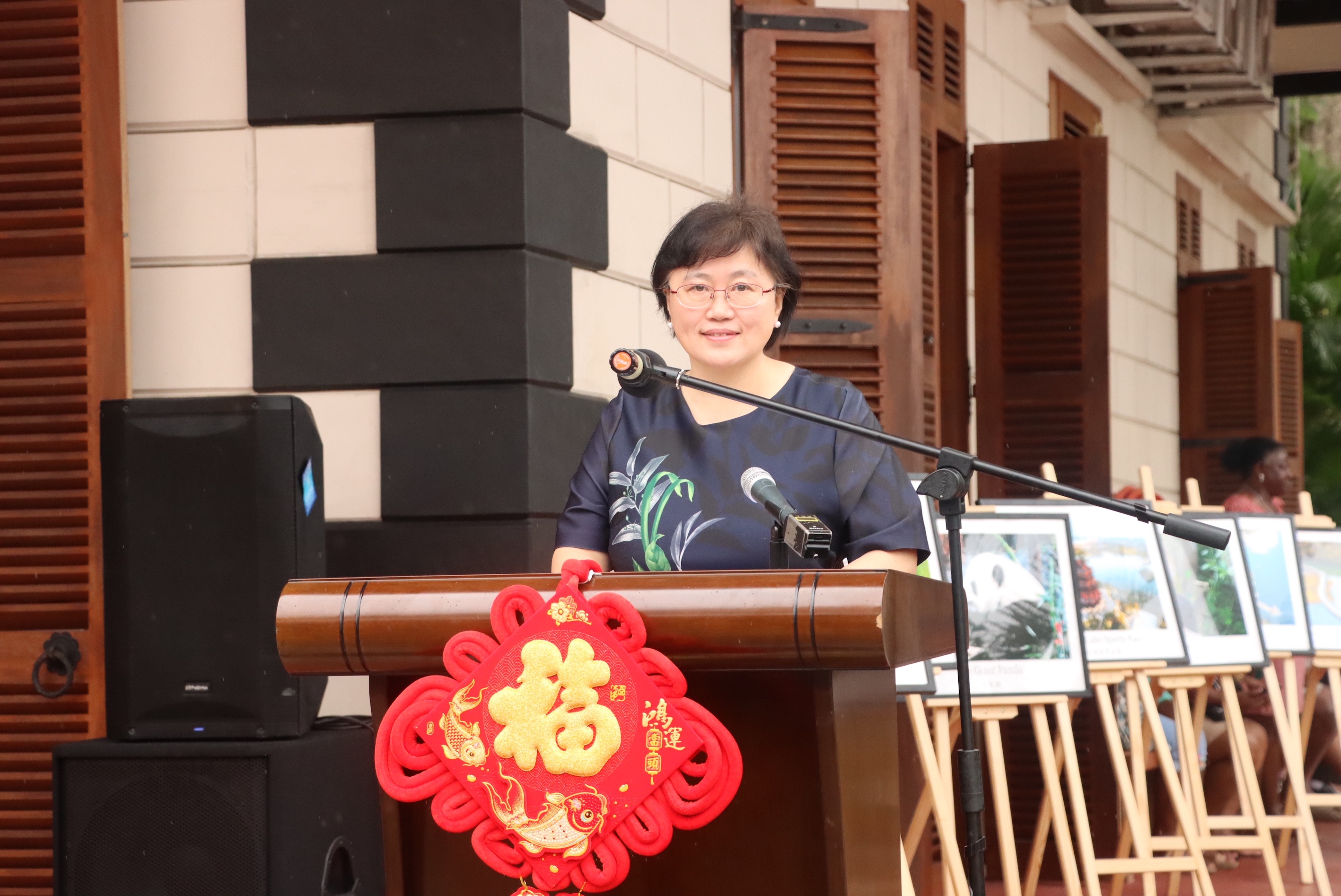 中國駐塞舌爾大使林楠致辭。中國駐塞舌爾大使館供圖