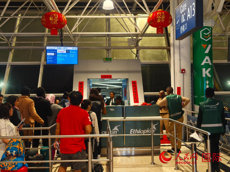 人民網(wǎng)亞的斯亞貝巴1月28日電 (記者黃煒鑫)除夕前夕,記者走進(jìn)埃塞俄比亞首都亞的斯亞貝巴博萊國際機(jī)場,感受濃濃中國年味。紅燈籠、春聯(lián)、中國結(jié)……在這座東非最繁忙的航空樞紐里,中國春節(jié)元素隨處可見。