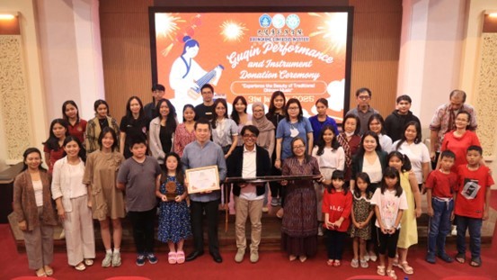 人民網(wǎng)雅加達2月1日電 (記者李培松)1月31日,正值中國新年大年初三,印尼巴陵康孔子學院攜手古琴大師楊致儉在該院舉行了“古琴雅韻再現(xiàn)千年風華”新春音樂會及古琴捐贈儀式,為觀眾帶來了一場穿越千年的音樂盛宴。中央民族樂團國家一級古琴演奏員、故宮博物院特邀古琴專家楊致儉傾情獻藝,印尼伽內(nèi)什師范大學副校長拉斯賓·丹斯、上海古琴文化發(fā)展基金會曹怡玲和楊自萊以及巴陵康孔子學院50余名師生出席此次活動。