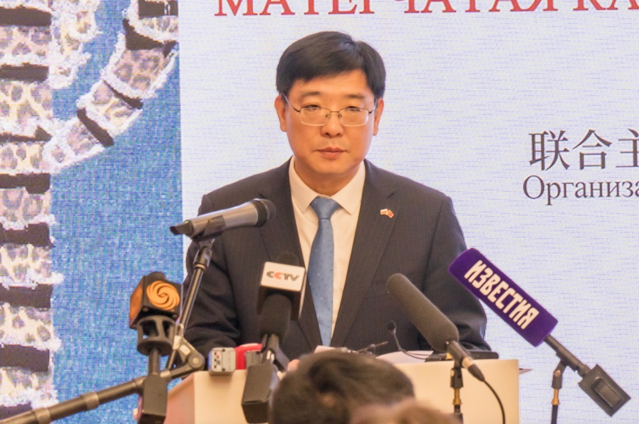 中國(guó)駐俄羅斯大使張漢暉夫人高巖、俄羅斯聯(lián)邦委員會(huì)國(guó)際事務(wù)委員會(huì)第一副主席杰尼索夫、中國(guó)駐俄羅斯大使館公使銜文化參贊封立濤、俄羅斯外交部發(fā)言人瑪麗亞·扎哈羅娃、俄中友協(xié)第一副主席庫(kù)利科娃、中誠(chéng)通國(guó)際投資有限公司董事長(zhǎng)孫伯輝等出席開幕式并致辭。前上海合作組織副秘書長(zhǎng)扎哈羅夫主持開幕式。