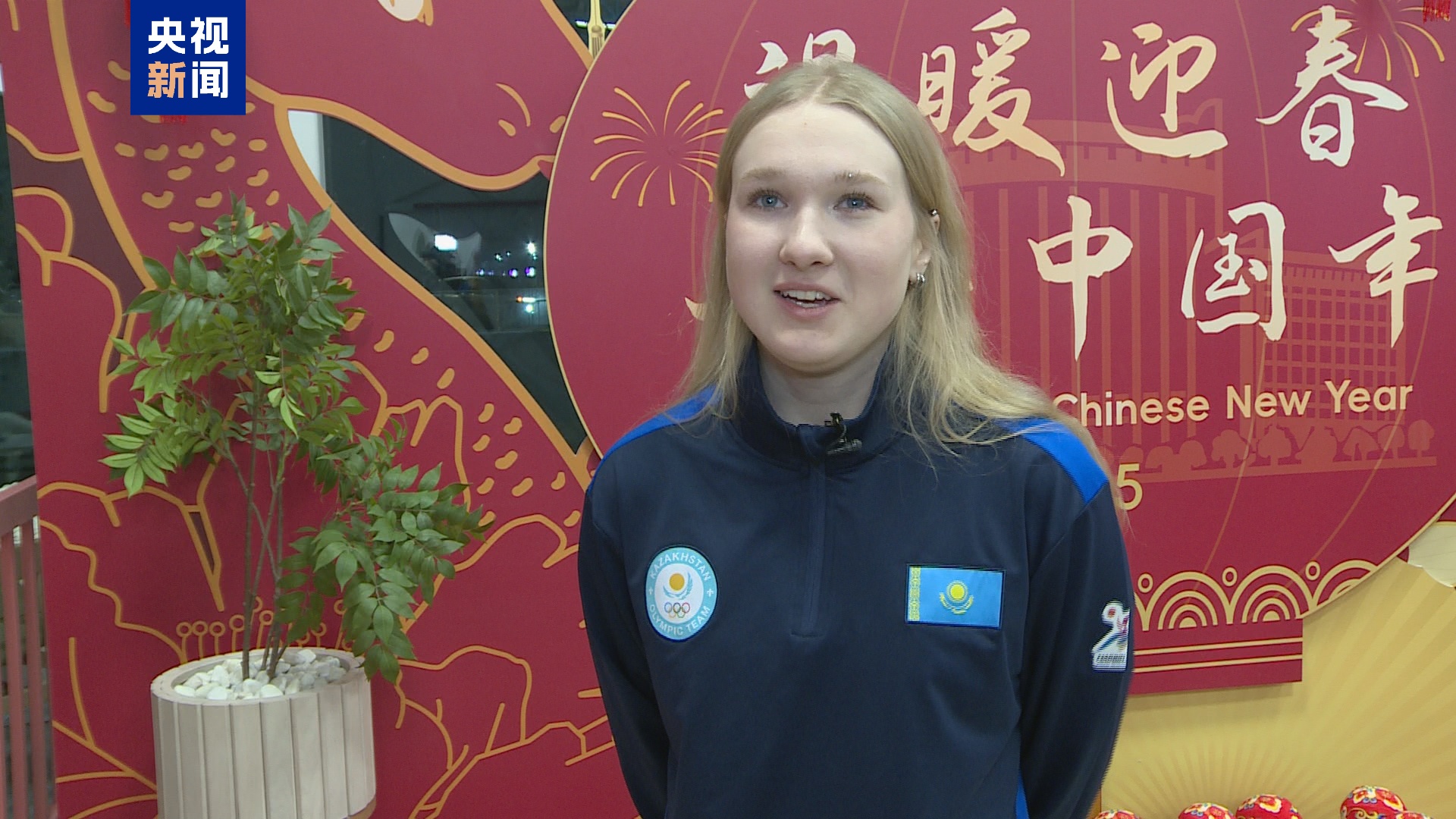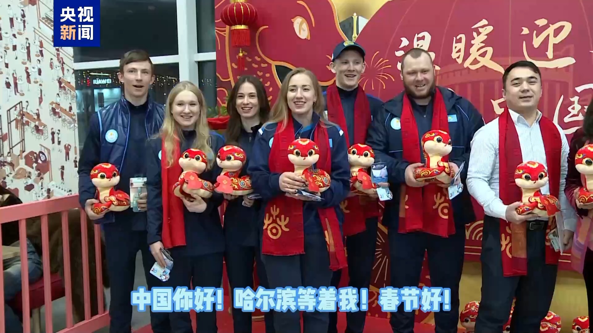 最后哈薩克斯坦高山滑雪國家隊全體出征隊員向中國觀眾獻上了新春祝福。(總臺記者 張譽耀)