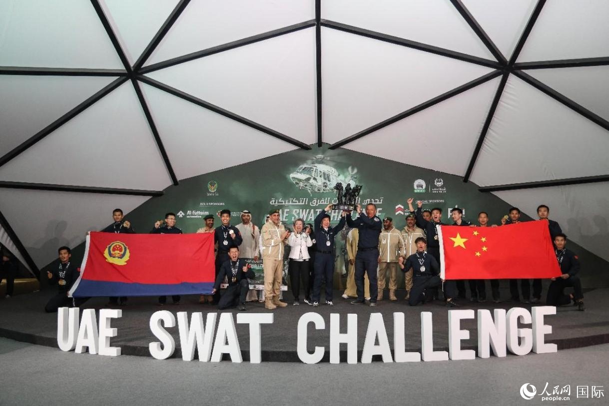 人民網(wǎng)迪拜2月6日電(記者管克江、任皓宇)2月5日晚,位于迪拜的第六屆阿聯(lián)酋特警挑戰(zhàn)賽現(xiàn)場(chǎng),祥獅舞動(dòng),紅旗飄揚(yáng)。在現(xiàn)場(chǎng)觀眾的助威吶喊聲中,中國(guó)特警隊(duì)員緊密協(xié)作,爬繩、穿網(wǎng)、攀墻,翻越障礙賽場(chǎng)一個(gè)個(gè)項(xiàng)目,以優(yōu)異成績(jī)完成挑戰(zhàn)。經(jīng)過連續(xù)五日的比賽,浙江特警隊(duì)和安徽特警隊(duì)勇奪第六屆阿聯(lián)酋特警挑戰(zhàn)賽冠軍和季軍。公安部派出的特警隊(duì)也獲得優(yōu)秀成績(jī)。