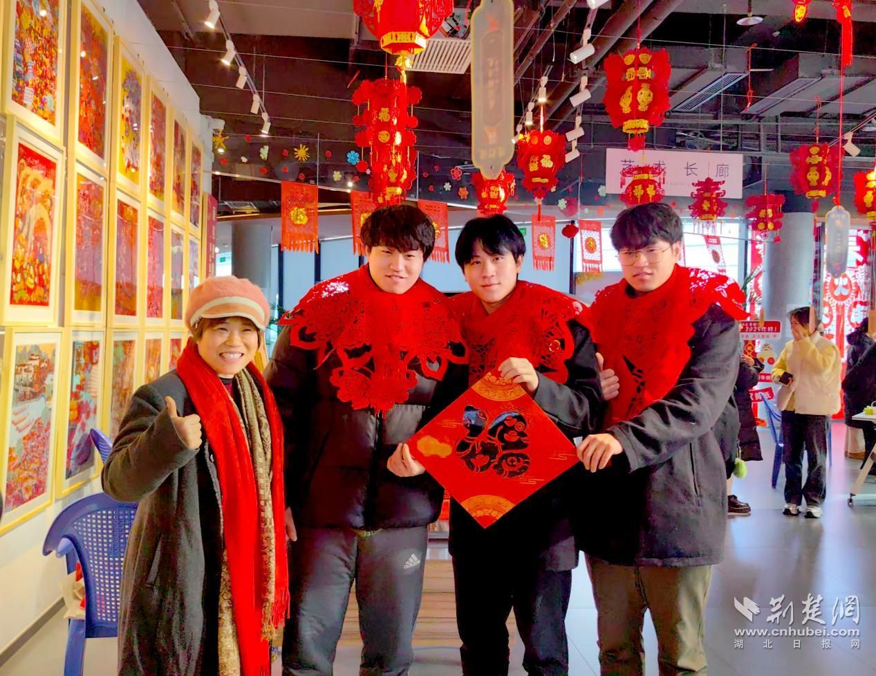 臺(tái)灣媽媽陳敏惠目前在武漢經(jīng)營(yíng)翔和口腔診所。體驗(yàn)非遺版畫(huà)和剪紙后,她對(duì)精巧的非遺贊嘆不已,直言此次武漢過(guò)年十分精彩、“年味足”。結(jié)束后,她將剪紙作品佩戴在三個(gè)兒子身上合影留念,稱紅色剪紙?jiān)⒁饧?,承載著對(duì)孩子們的新年祝福,“我覺(jué)得剪紙滿是福氣的意味,這樣新年才有新希望?!?/p>