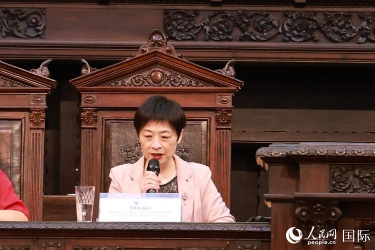 中國駐里約熱內(nèi)盧總領(lǐng)事田敏在活動(dòng)中致辭。人民網(wǎng)記者 陳海琪攝