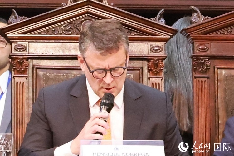巴西中國友好協(xié)會(huì)主席恩里克·諾布雷加在活動(dòng)中致辭。人民網(wǎng)記者 陳海琪攝