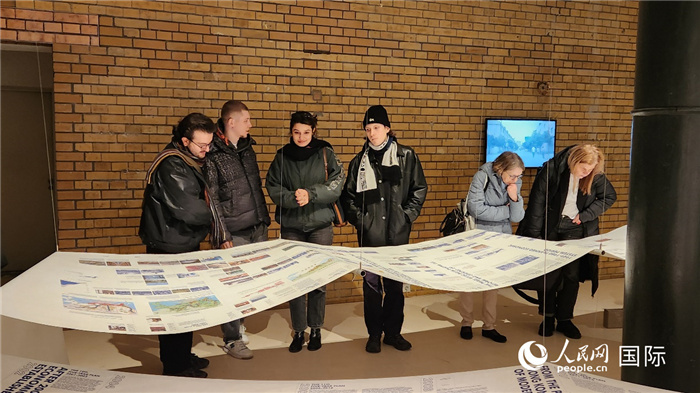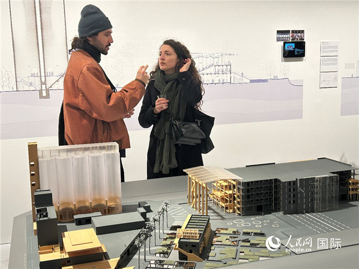 觀眾正在看展覽中的深圳荷水基地建筑項目。人民網(wǎng)記者 徐馨攝