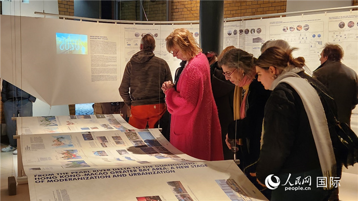 觀眾正在觀看深圳大學(xué)粵港澳大灣區(qū)創(chuàng)新設(shè)計實驗室的研究成果“水與城市化:深圳案例”。人民網(wǎng)記者 劉仲華攝