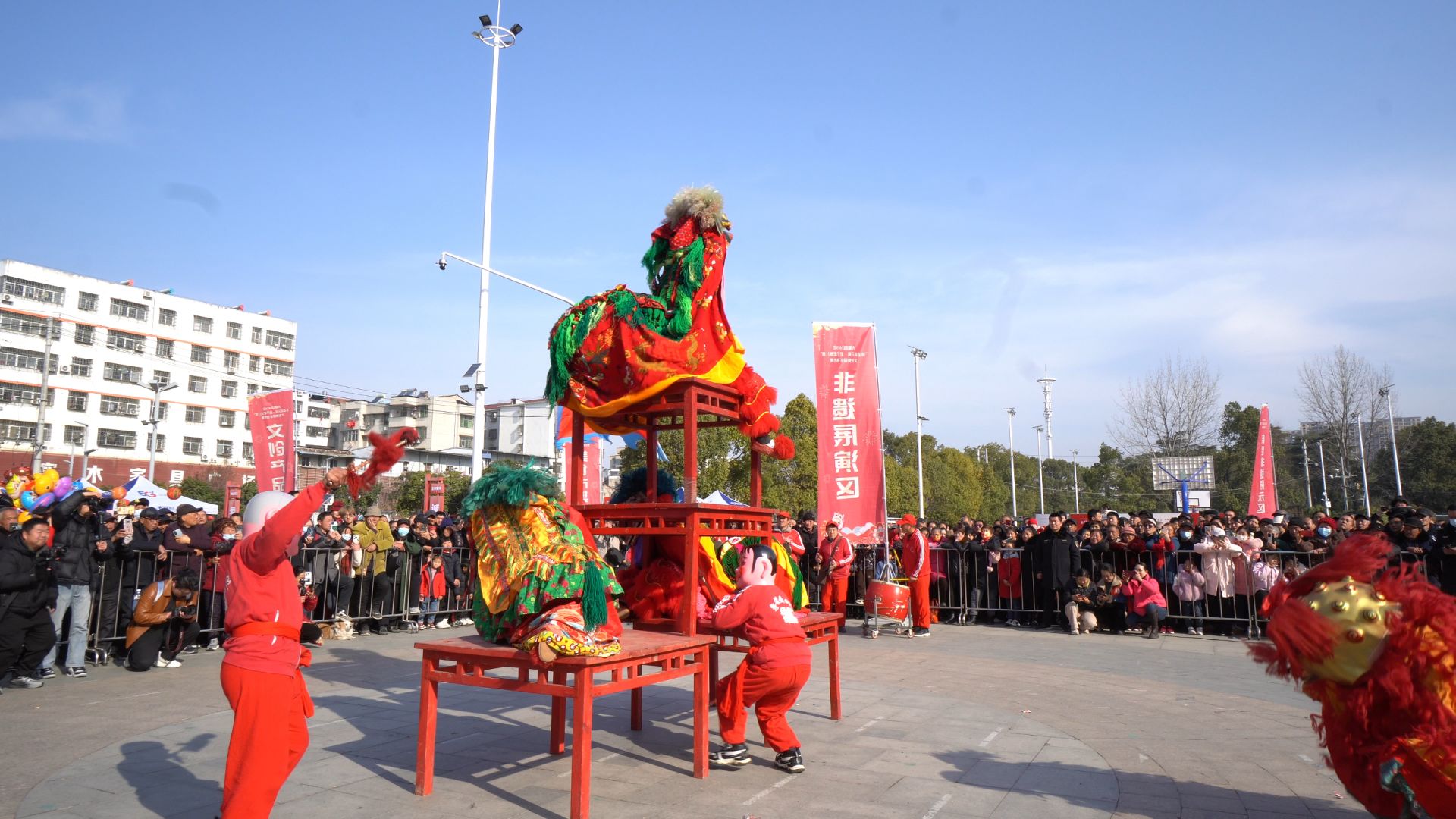 非遺市集活動分為民俗非遺展示、非遺展演、互動體驗、文創(chuàng)產(chǎn)品展示、美食市集5大區(qū)域。展演區(qū)人氣火爆,宣化店鎮(zhèn)李樓舞獅隊表演“四獅獻瑞鬧元宵”,獅子們以其靈動舞姿和默契配合,展現(xiàn)了全縣人民高揚“進”的主旋律、奮勇爭先的精神風(fēng)貌。