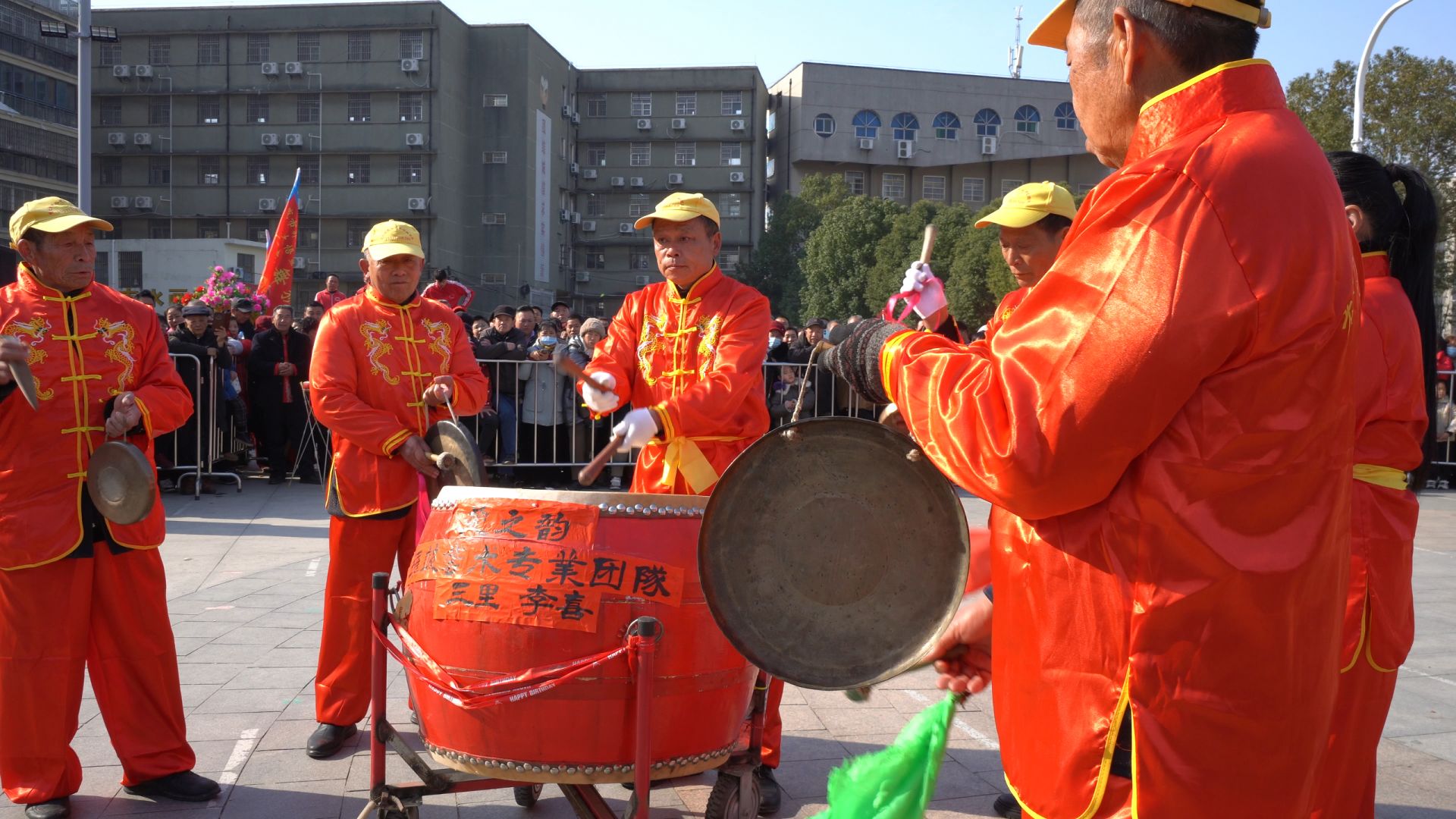 活動現(xiàn)場,李仁喜等非遺傳人為大家展示大悟打擊樂,鏗鏘的節(jié)奏、鮮明的韻律,打出老區(qū)人民奮力譜寫中國式現(xiàn)代化大悟篇章的精氣神。