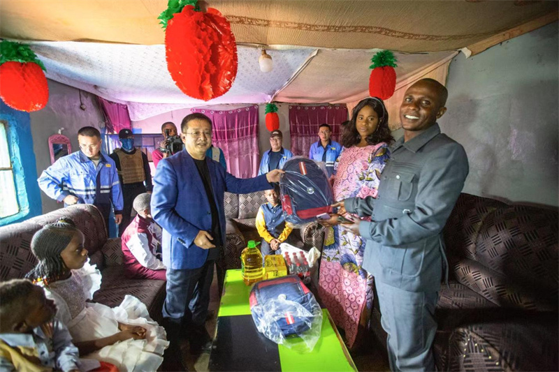 中企春節(jié)送溫暖惠及當地員工家庭。華剛礦業(yè)供圖