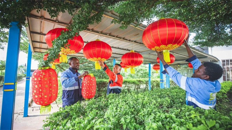 “紅燈籠是中國年的標配,你看我們中國紅燈籠漂不漂亮?”華剛礦業(yè)商貿總監(jiān)胡天彪雙手高高舉起大紅燈籠,滿臉笑意地對著身旁的剛方員工米歇爾說道。米歇爾的眼睛瞬間亮了,回應道:“哇,太漂亮了!每年這個時候,我都很興奮,能和中國朋友們一起迎接中國年是我最開心的事兒!”