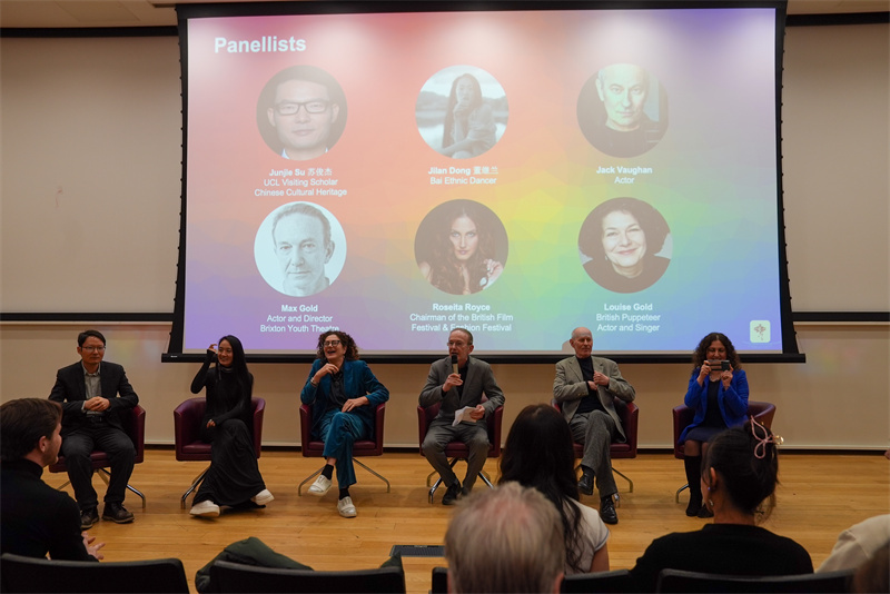 電影放映結(jié)束后舉辦了座談交流會,來自中英兩國的電影人、學(xué)者及文化界人士,就云南文化的全球傳播、影像敘事的跨文化交流等議題展開了深入探討。參加交流的嘉賓有倫敦大學(xué)學(xué)院訪問學(xué)者蘇俊杰教授,白族舞蹈家及孔雀舞團(tuán)首席舞者董繼蘭、出演《王冠》等著名影視作品的英國演員杰克·沃恩、布萊頓青年劇院導(dǎo)演及皇家莎士比亞劇團(tuán)成員馬克斯·戈?duì)柕?、英國電影?jié)主席羅西塔·羅伊斯教授、《媽媽咪呀!》等著名西區(qū)音樂劇演員路易絲·戈?duì)柕隆?/p>