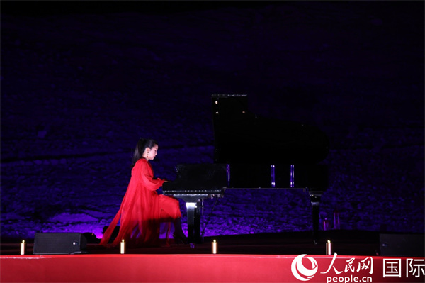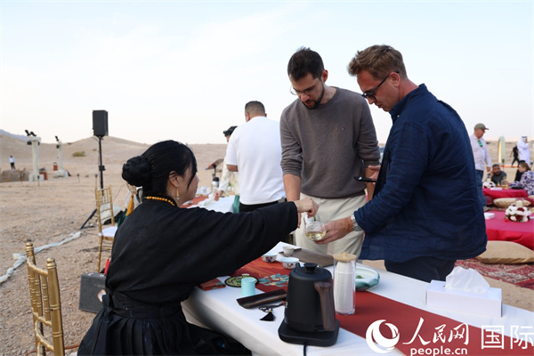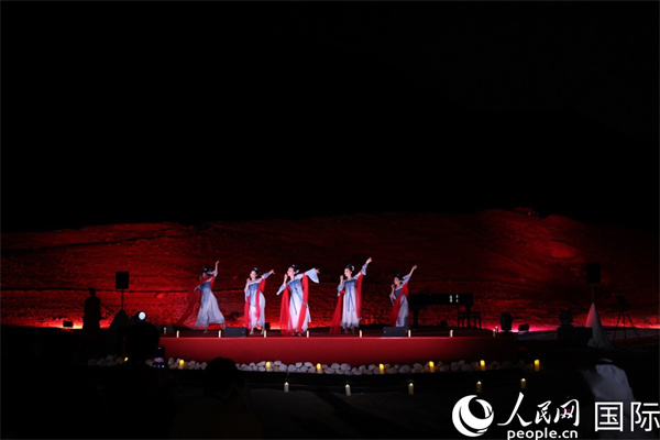 杰貝爾·哈菲特沙漠公園是阿聯(lián)酋世界文化遺產(chǎn)地——艾因文化遺址的重要組成?;顒赢斕?,與會嘉賓與觀眾坐在傳統(tǒng)阿拉伯地毯上,品嘗中國茶藝師帶來的各具特色的中國茶,欣賞《漁舟唱晚》《茉莉花》等傳統(tǒng)曲目。夜幕時分,在蒼涼的群山環(huán)繞中和喜慶的紅色燈光映襯下,青年華裔鋼琴家獻上《彩云追月》《月亮代表我的心》《月光奏鳴曲》等中外名曲。