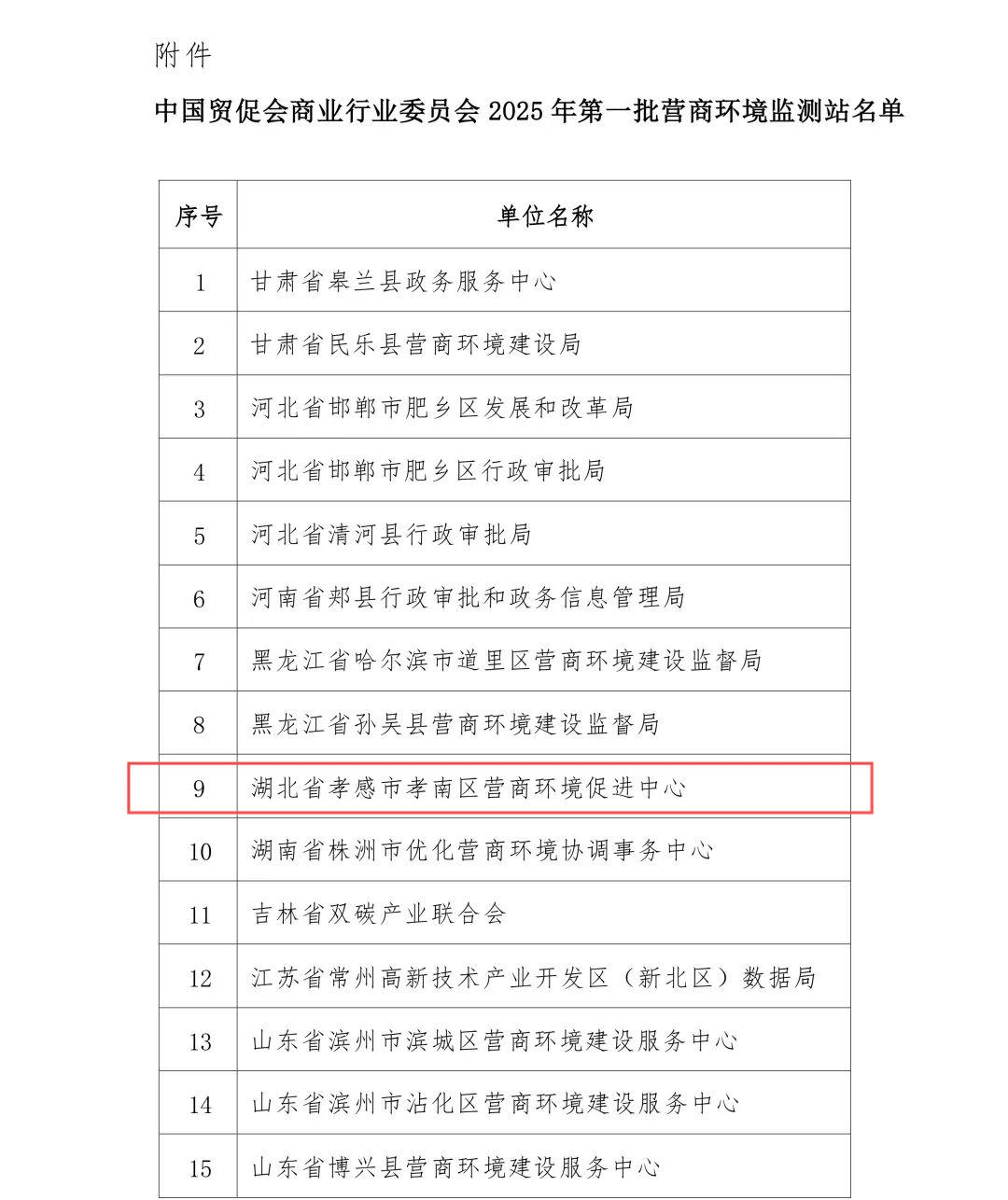 荊楚網(wǎng)(湖北日報網(wǎng))訊(通訊員 王佳玉)2月19日,中國國際貿(mào)易促進委員會商業(yè)行業(yè)委員會公布了2025年第一批營商環(huán)境監(jiān)測站名單,孝南區(qū)營商環(huán)境促進中心入選,為本次湖北省唯一入選縣市區(qū)。湖北首衡城農(nóng)產(chǎn)品有限公司、湖北港榮食品有限公司、湖北爽露爽食品股份有限公司、銘冠(湖北)包裝材料有限公司等30家企業(yè)入選營商環(huán)境觀測點。