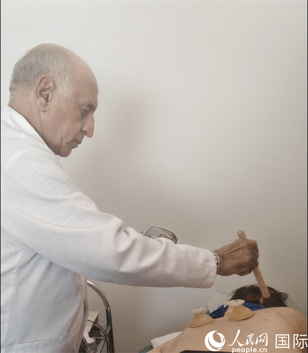 哈利勒正在對患者進(jìn)行拔罐治療。人民網(wǎng)記者 黃培昭攝